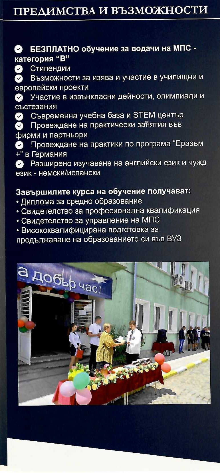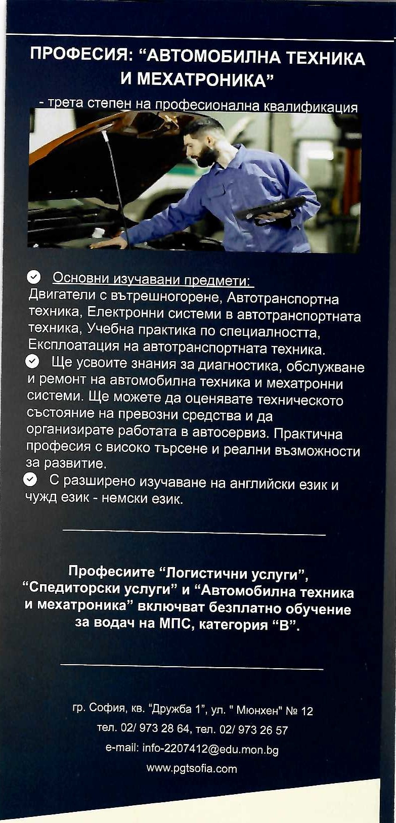3. СПЕЦИАЛНОСТ: "Автомобилна мехатроника" - за IV етап на класиране свободни места: 9 бр.