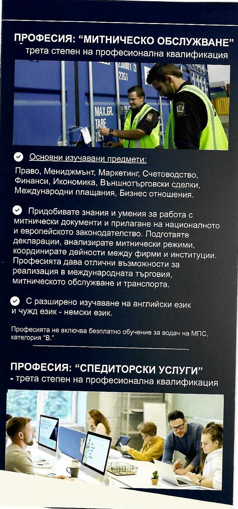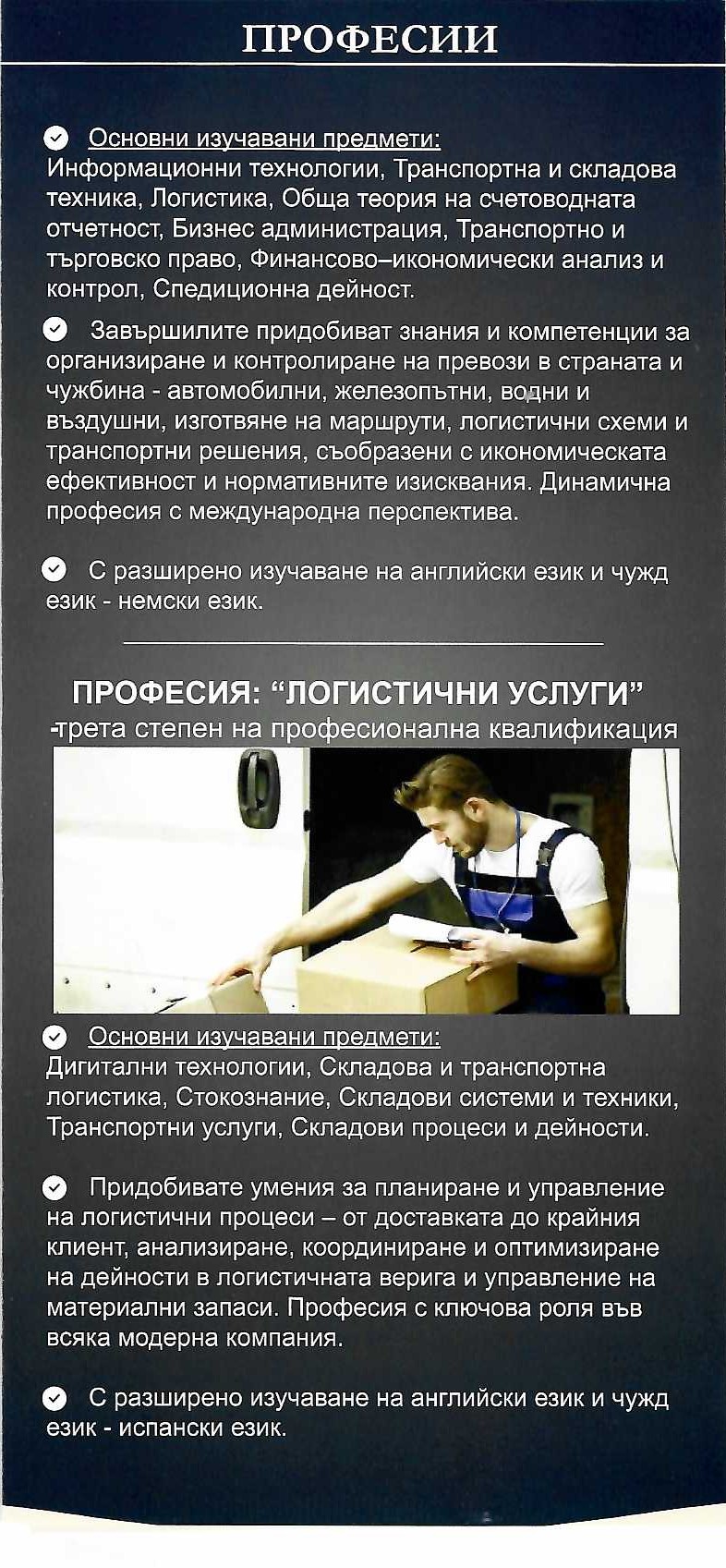 2. СПЕЦИАЛНОСТ: "Спедиция, транспортна и складова логистика" - за V етап на класиране свободни места: 16 бр.